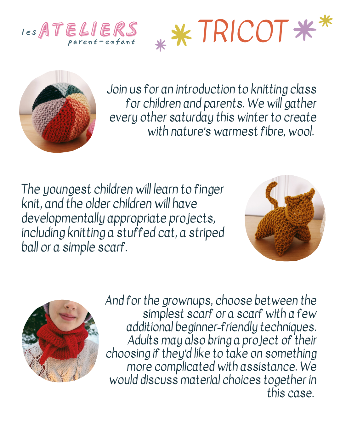 A time to create together, dream, and give free rein to the imagination, through pastel drawing, a story that comes to life, a knitting project, or a simple sculpture.