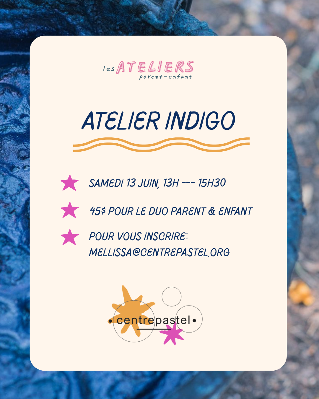 Le Centre Pastel ouvre ses portes aux familles les fins de semaine, pour leur faire découvrir la richesse de ses activités artistiques. Ces ateliers sont pensés pour tous, même pour ceux qui ne fréquentent pas le Centre en semaine.